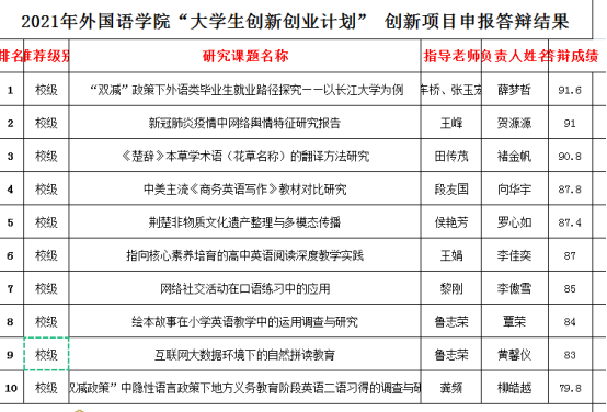 2021年乐鱼网页版“大学生创新创业计划” 项目立项结果公示