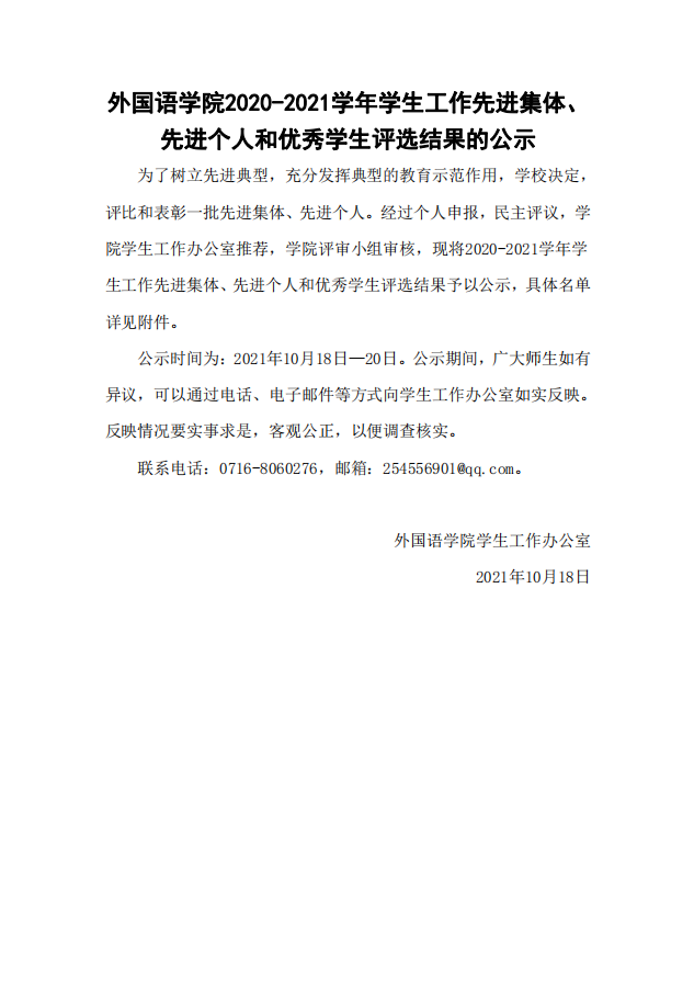乐鱼网页版2020-2021学年学生工作先进集体、先进个人和优秀学生评选结果的公示