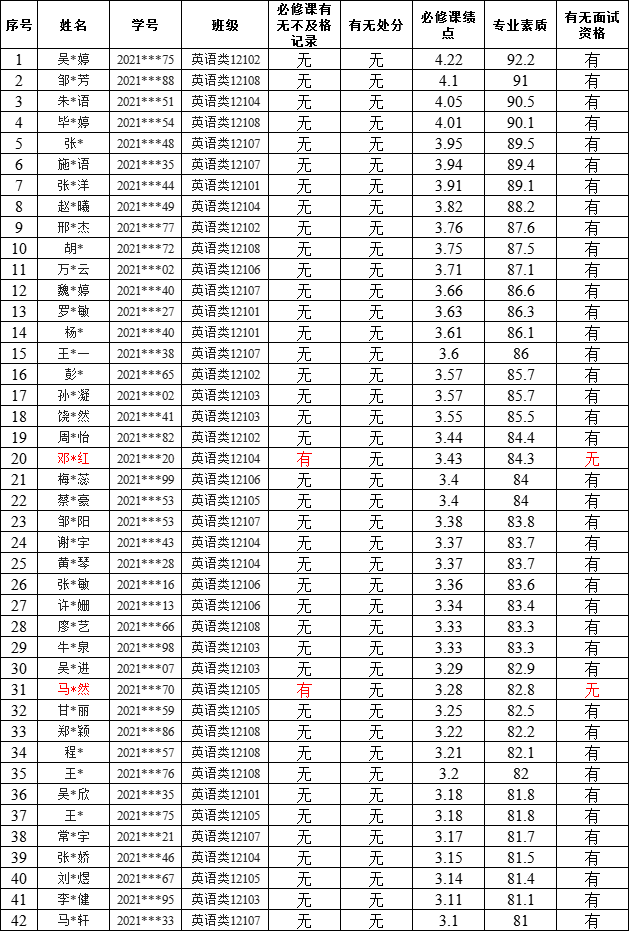 一、经学生本人申请、学院资格审核,面试资格学生名单如下: