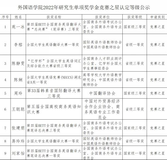 乐鱼网页版2022年研究生单项奖学金竞赛之星等级公示