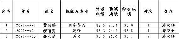 根据《长江大学普通本科生专业分流与转专业管理办法(试行)》(长大校发〔2019260号)文件以及教务处《关于2021级普通本科生秋季转专业工作的通知》要求,结合乐鱼网页版2021级本科生转专业工作方案的具体安排,我院于97日下午组织了对拟转入学生的面试。综合英语成绩和面试成绩,经我院党政联席会讨论通过,现将拟接收名单公示如下: