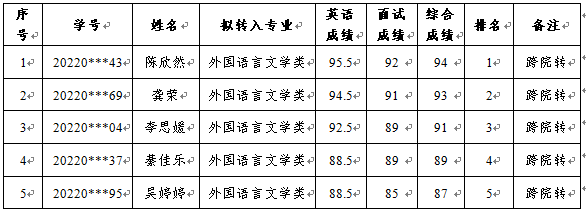 根据《长江大学普通本科生专业分流与转专业管理办法(试行)》(长大校发〔2019〕260号)文件以及教务处《关于开展2022级普通本科生春季学期转专业工作的通知》要求,结合乐鱼网页版2022级本科生转专业工作方案的具体安排,我院于3月9日下午组织了对拟转入学生的面试。综合英语成绩和面试成绩,经我院党政联席会讨论通过,现将拟接收名单公示如下: