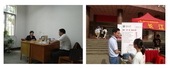 在招生宣传中,学院在各包片中学设立咨询点,拉挂长江大学横幅进行宣传,面对面为高考考生和家长提供咨询服务,帮助考生及家长更好的了解长大、选择长大。