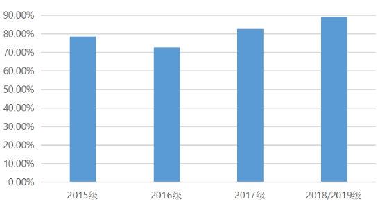 乐鱼网页版2018、2019级英语专业学生专四一次通过率在上一届实现历史飞跃的基础上又向前迈了一个台阶,平均通过率达到89.15%(其中2019级率为87.63%,2018级通过率为90.67%,),整体比上一届提高了7个百分点,高出全国大学专四平均通过率(54.57%)34.5个百分点。