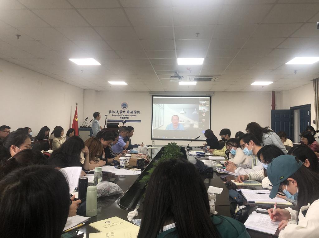 本次分享活动的主题是课程思政。活动首先由教育部教学科研一体化外语教学研究虚拟教研室负责人南开大学乐鱼网页版张文忠教授做指导发言。张教授提出课程思政应围绕价值、知识、能力、及德行四个维度,注重显性和隐性两种方式,围绕学科特色,做实做真,切实履行高校立德树人的根本宗旨。